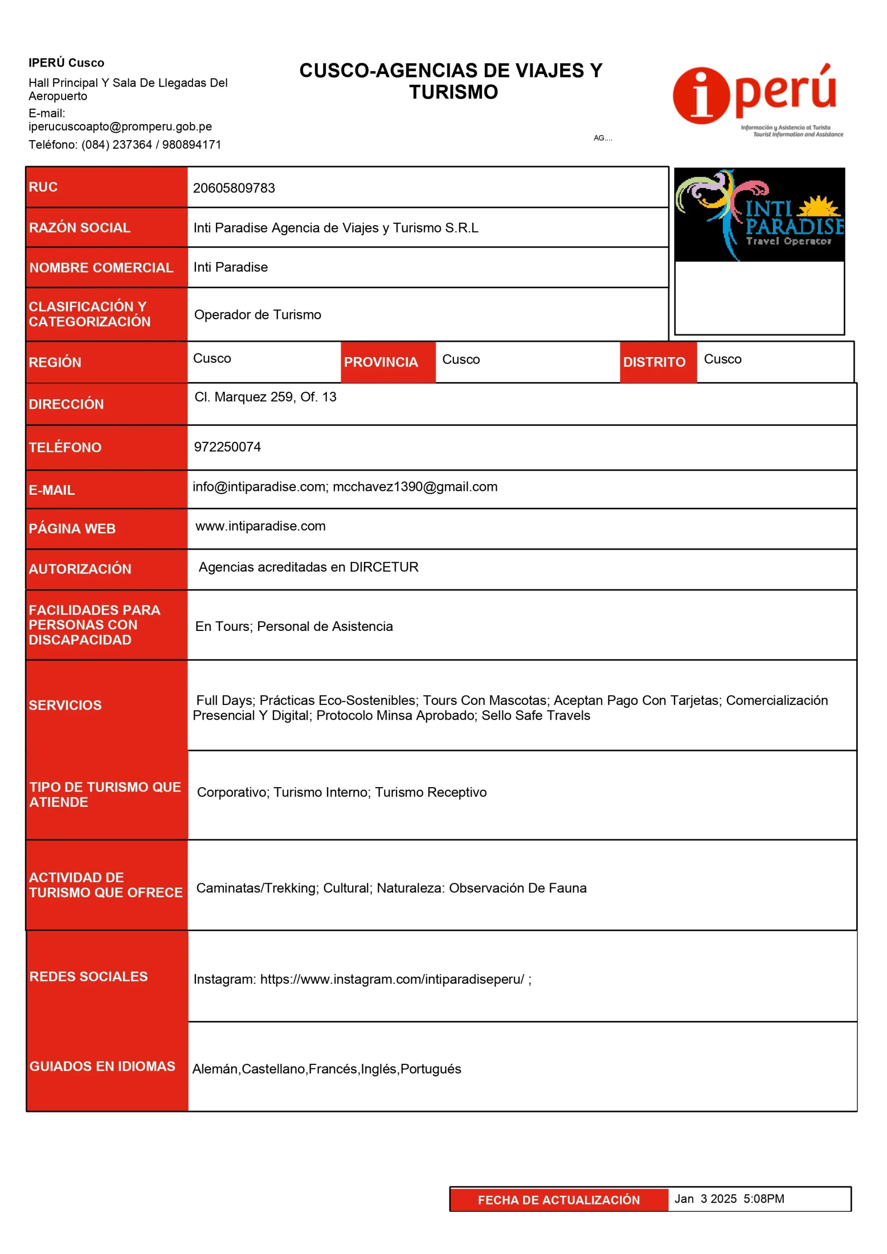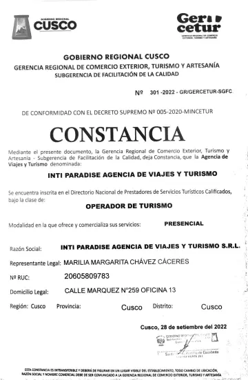 En Inti Paradise trabajamos con total seriedad y profesionalismo: