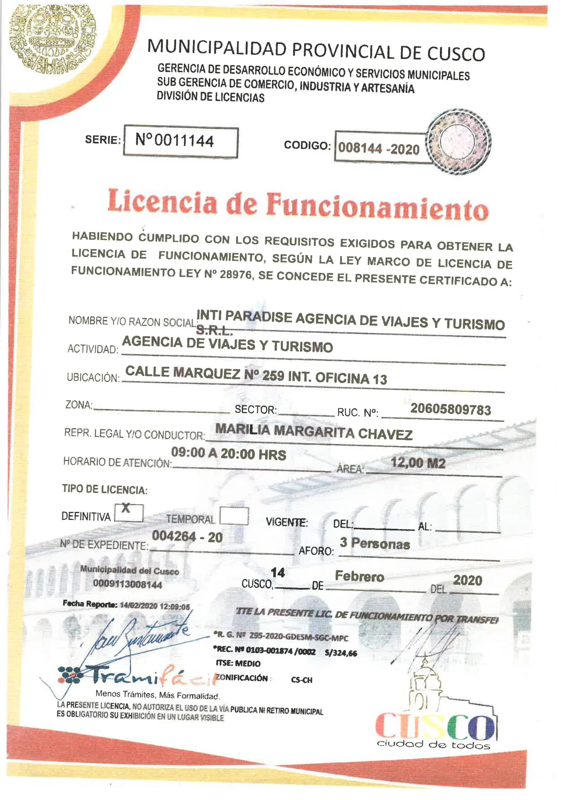 LICENCIA DE FUNCIONAMIENTO INTI PARADISE