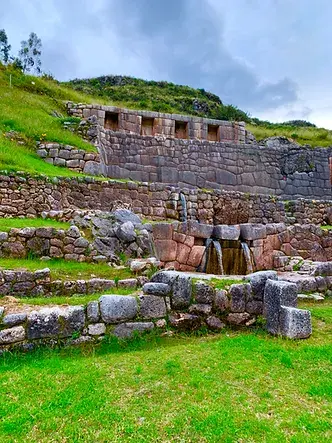 Continuaremos hacia Qenqo, un sitio ceremonial con galerías subterráneas que evocan un laberinto. Luego visitaremos Puca Pucará, cuyo nombre significa “fortaleza roja”, y finalmente Tambomachay, conocido por sus canales de agua y su posible función como lugar de descanso para la nobleza inca.