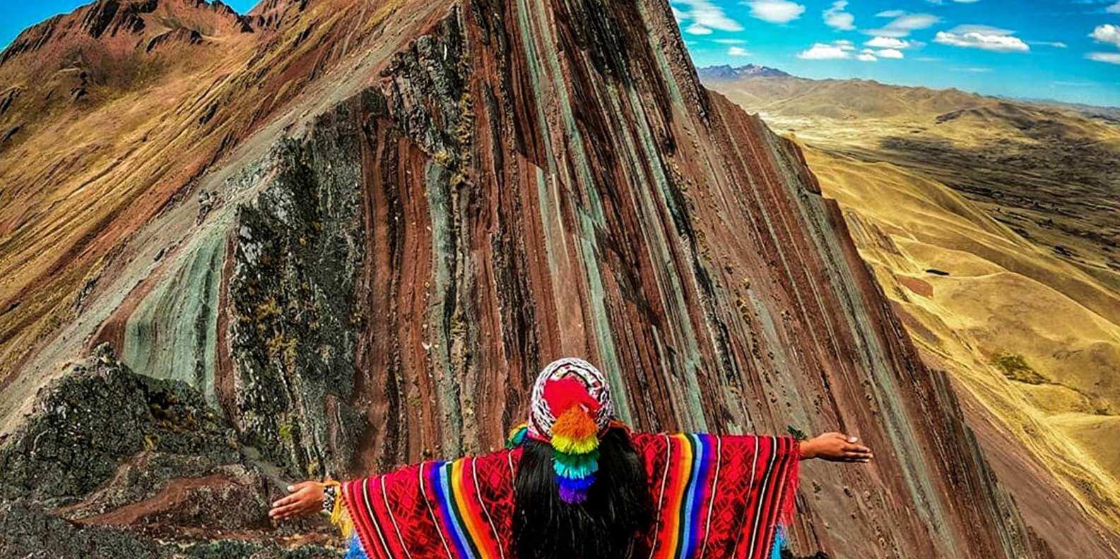 El recorrido a Pallay Punchu o Pallay Poncho es una de las experiencias más auténticas y menos masificadas de la región de Cusco. Este impresionante atractivo natural, también conocido como “montaña filuda” por su forma única o “Condorpa Sayanan” (lugar donde se posa el cóndor), destaca por sus formaciones coloridas que recuerdan a un poncho andino tejido a mano.